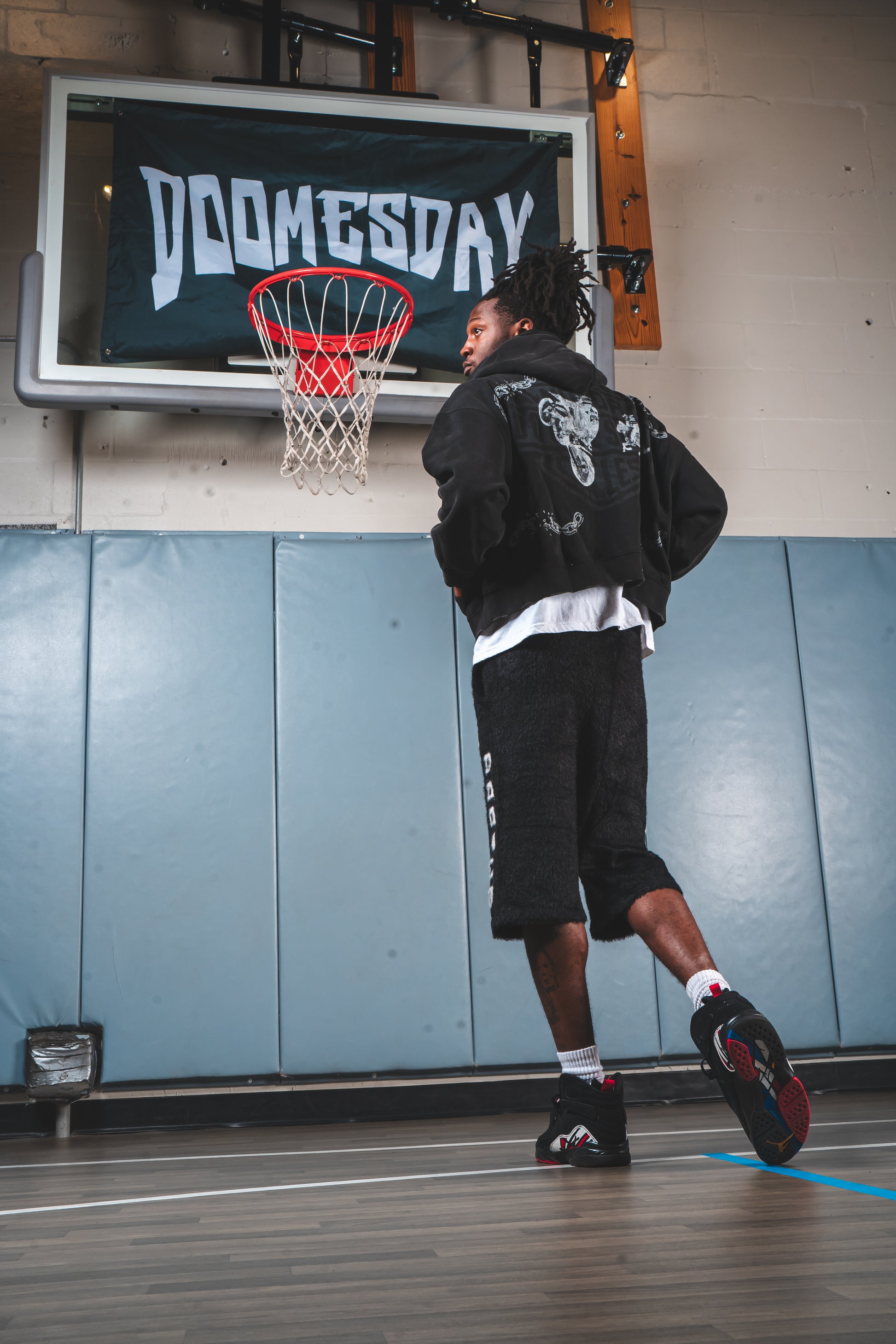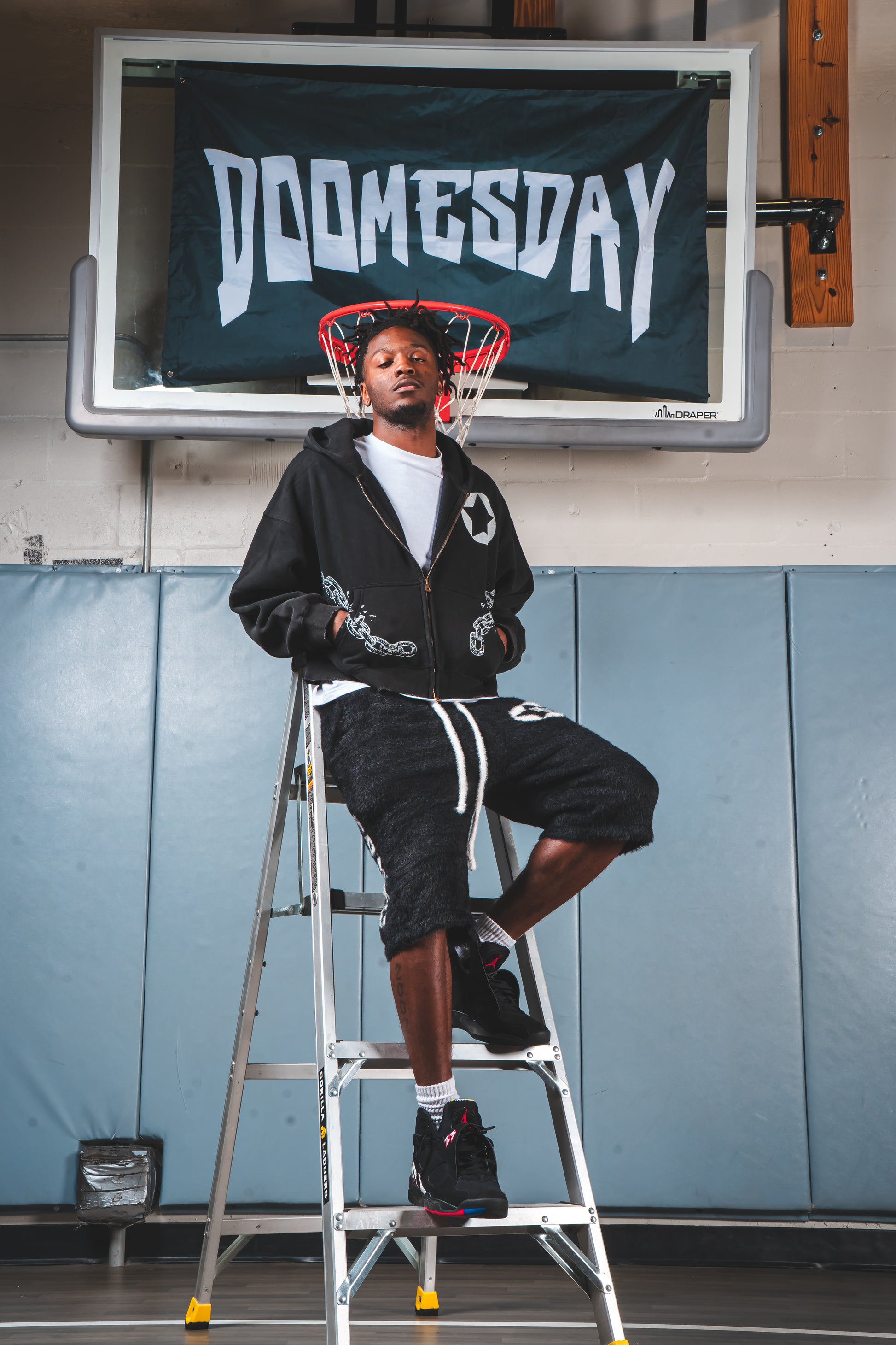 The front features fractured chain detailing and a star insignia—marks of endurance in a world that tests you daily. On the back, Doomesday’s shield graphic stands as a statement of protection, discipline, and resolve. Every detail reflects the tension between pressure and purpose. This isn’t made for comfort alone—it’s made for those who keep going.